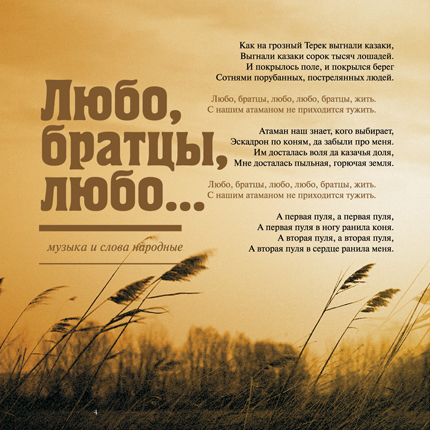 Очень нравится исполнение Гребенкиным. Вот так я ее и представляю. Песню красивую, растяжную, по своему грустную. Явно не для исполнения разухабистого казачьего хора, имхо.